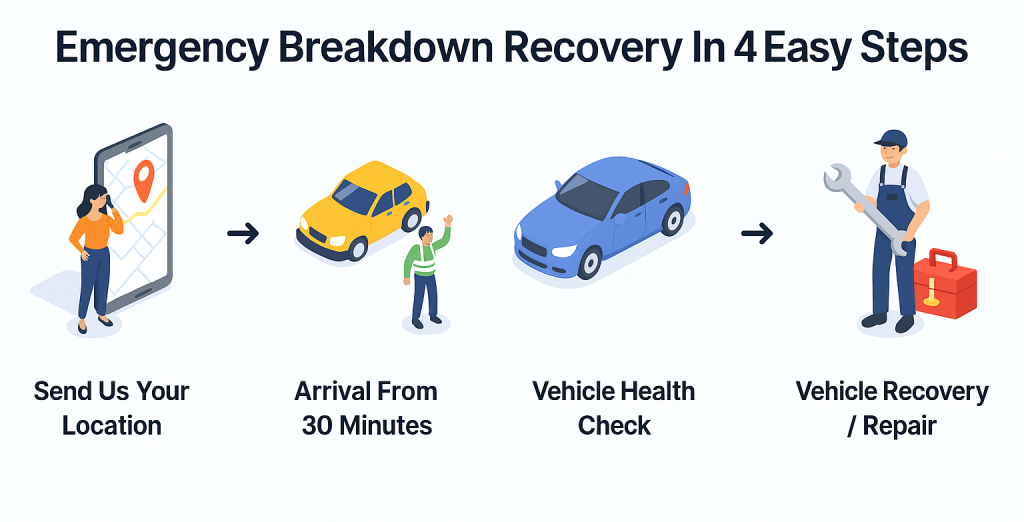 Stuck due to a sudden breakdown? Our reliable recovery team arrives quickly to get your vehicle safely off the road.